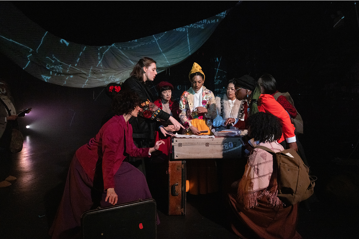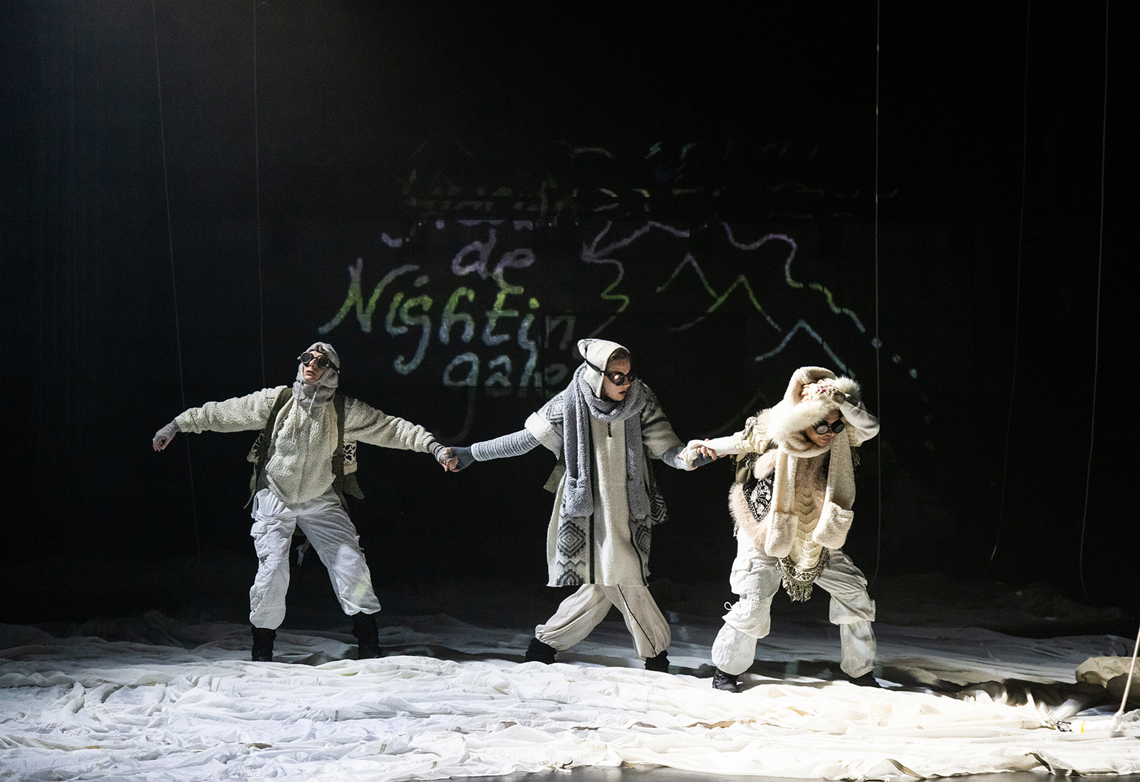 Now, in 2025, our collective of women brings Le Guin’s fantastical but harsh Antartica to life, transforming the Ellen Stewart Theater into a living breathing world of icebergs, glaciers, blizzards, and horizonless expanses.