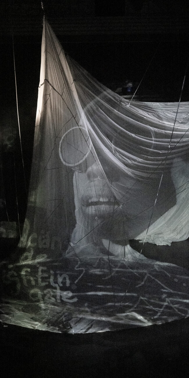 The project (initiated by Onni Johnson, who was carrying the desire to bring the New Yorker short story to stage since it first came out in the 80), was carried out through a period of two years. The group of queer and fem people gathered for the creation, drew inspiration by Le Guin’s characters’ leaderless expedition, and attempted to work as a collective.
